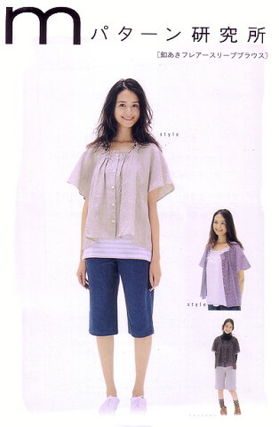 実物大型紙・釦あきフレアースリーブブラウス前ボタンあきで羽織りやすいブラウス。