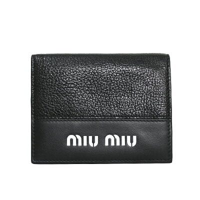 製造刻印 — 金具 シルバー金具 カラー ブラック サイズ 幅10cm × 高さ8.5cm × 奥行き 1.5cm 付属品 純正箱 形状 財布 機能 開閉形式/ボタン開閉式 内側:ボタン式コインケース×1 内側:カードスリット×3 内側:フリーポケット×3 商品案内 ミュウミュウよりシンプルな二つ折り財布のご紹介です。