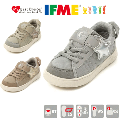 イフミー ナチュレ IFME 20-2323 キッズ ジュニア スニーカー イフミーライト シューズ 子供靴 女の子 ローカット 通園 普段履き かわいい 星柄 ベルクロ 軽い 幅広 ベージュ ブラウン グレー 15cm 16cm 17cm 18cm 19cm