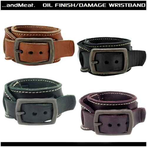 andMeat ダメージ加工 レザーブレス オイルブラウン ブラック グリーン ワインレッド メンズ ブレス ハンドメイド 本革 牛皮 ヌメ革 リストバンド 革ブレス サドルレザー 丸牛ブレス ブランド プレゼント 人気 おしゃれ