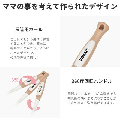 moYUUm シリコン哺乳瓶ブラシ 2種セット カラー コーラルベージュ/クールグレー/ミント 素材 持ち手/ブラシ台:ポリプロピレン ブラシ:プラチナシリコン セット内容 哺乳瓶用ブラシ1本、先端洗浄ブラシ1本 耐熱温度 持ち手/ブラシ台:20~110℃/ブラシ:20~250℃ 製造国 韓国 商品説明 くすみカラーでおしゃれな moYUUm モユム シリコン哺乳瓶ブラシ2種セット。
