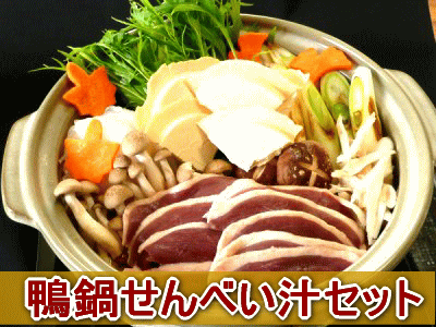 ギフト対応 鴨鍋に南部せんべいを入れちゃいました! コクのある鴨のだしをたっぷり吸ったおせんべいがもうたまりません! とろけるプルプル感を是非お試しください。
