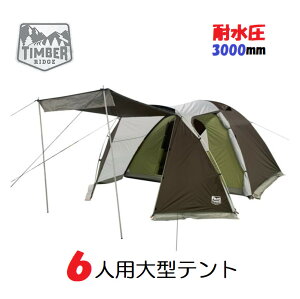 Timber Ridge ティンバーリッジ【6人用大型テント】6人用ツールーム ドーム型 テント 耐水圧3000ミリ 天井高198センチ ジッパー式レインフライ 涼しく快適 ほこりや雨粒の侵入をブロック キャンプ アウトドア テント 【即納品◎】安定したアルミニウムポールで組み立てる広く快適なドームテント ティンバーリッジ6人用ツールームドーム型テントは、快適さと機能性を組み合わせた6人用大型テントで、前庭部の大型ドアと裏側のジッパードアで通気性に優れます。