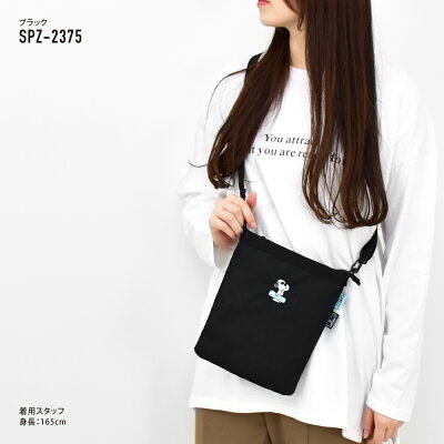 スヌーピー サコッシュ ショルダーバッグ ブラック(SPZ-2375) スクエア 斜めがけ 撥水 サスティナブル エコ 軽量 小さめ ショルダー ロゴ 黒 女子 男女兼用 高校生 ユニセックス レディース 大人 大学生 アウトドア フェス ポシェット お出かけ かわいい キャラクター グッズ